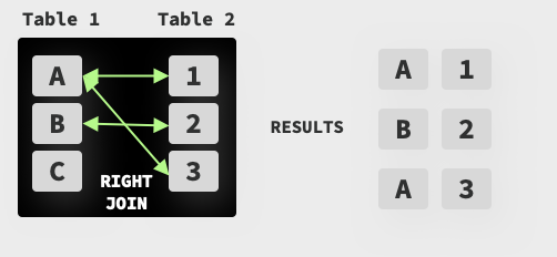Below you can also see a reference image of how the RIGHT JOIN (or RIGHT OUTER JOIN) works: