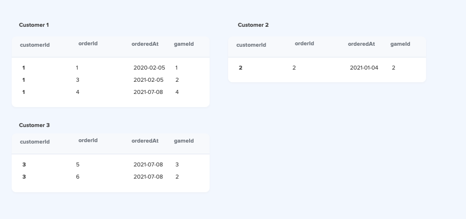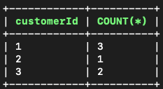 Great! Now let's try grouping the orders by each customer with the customerId by adding the GROUP BY statement: